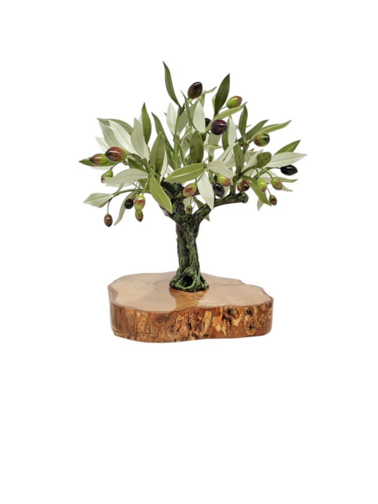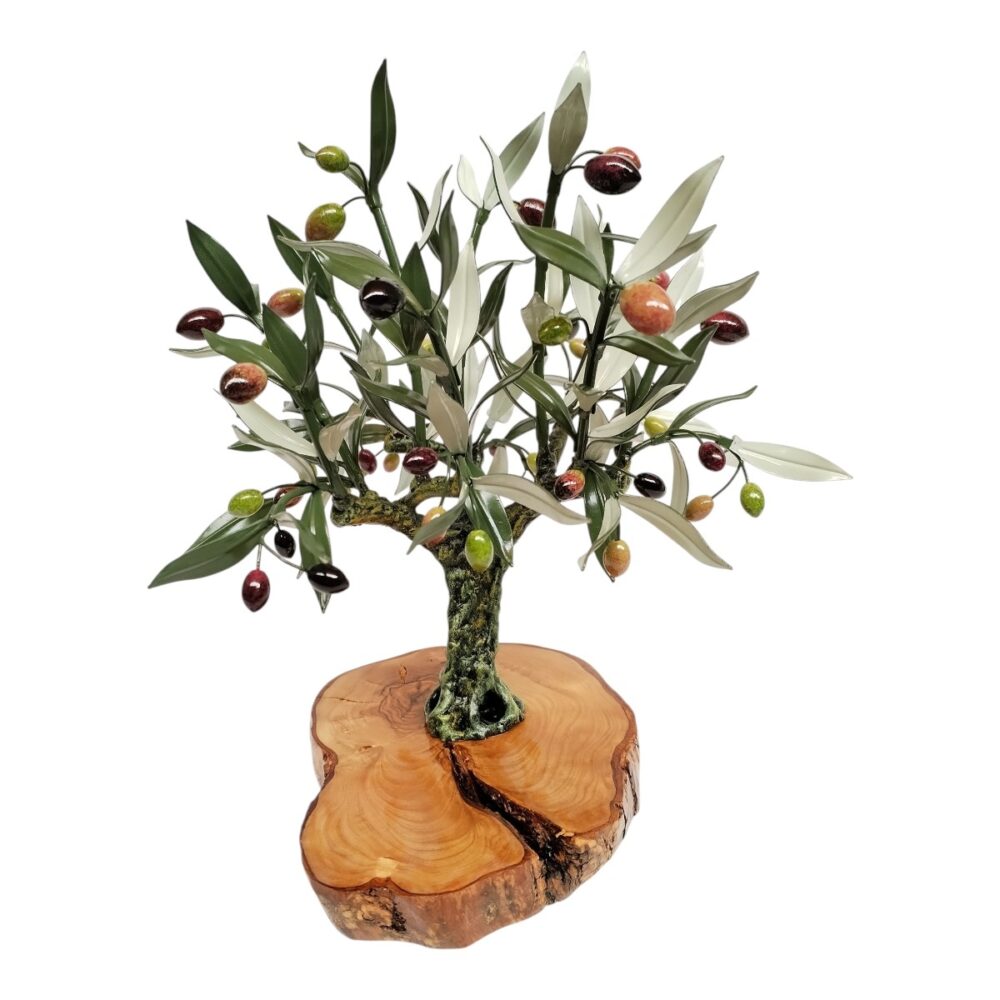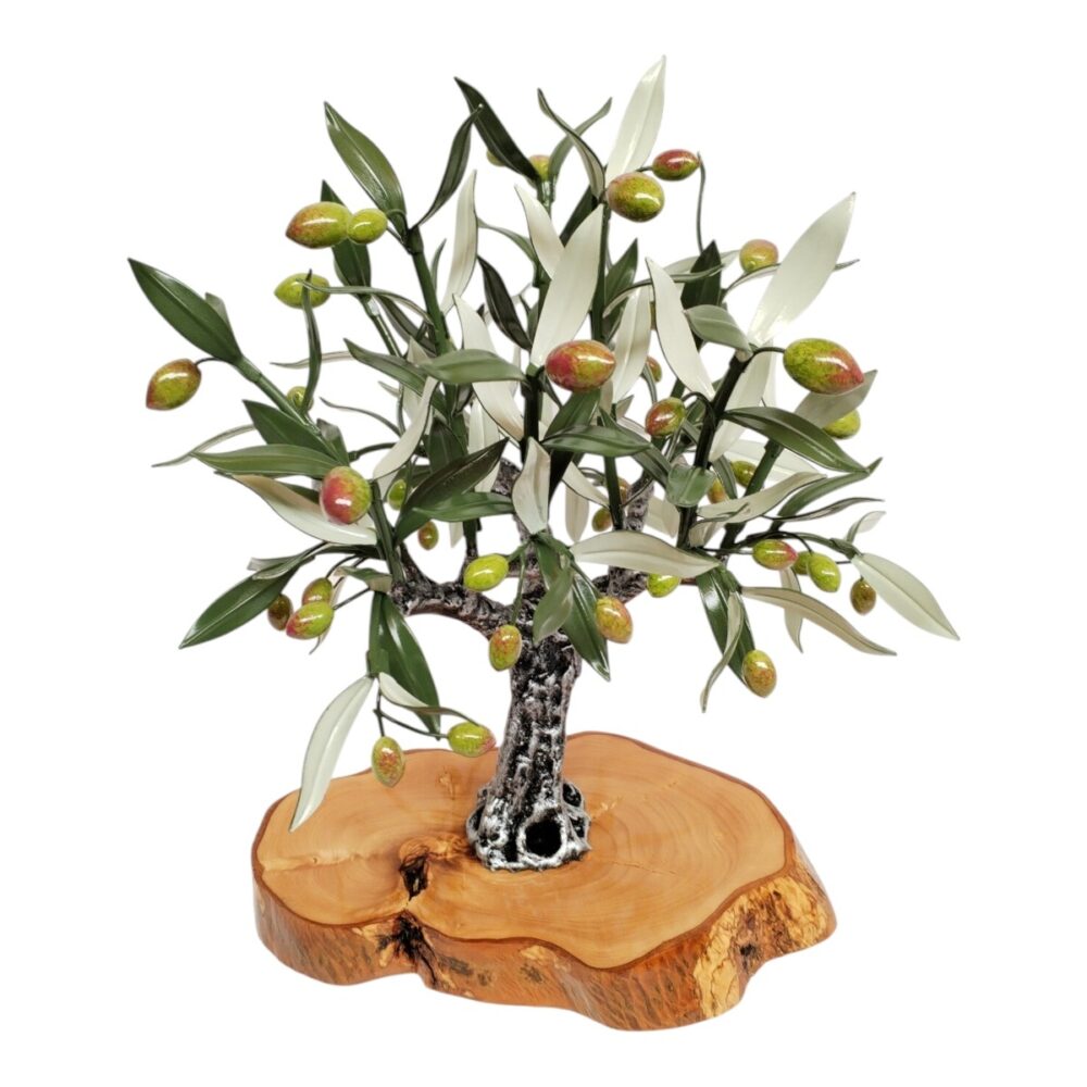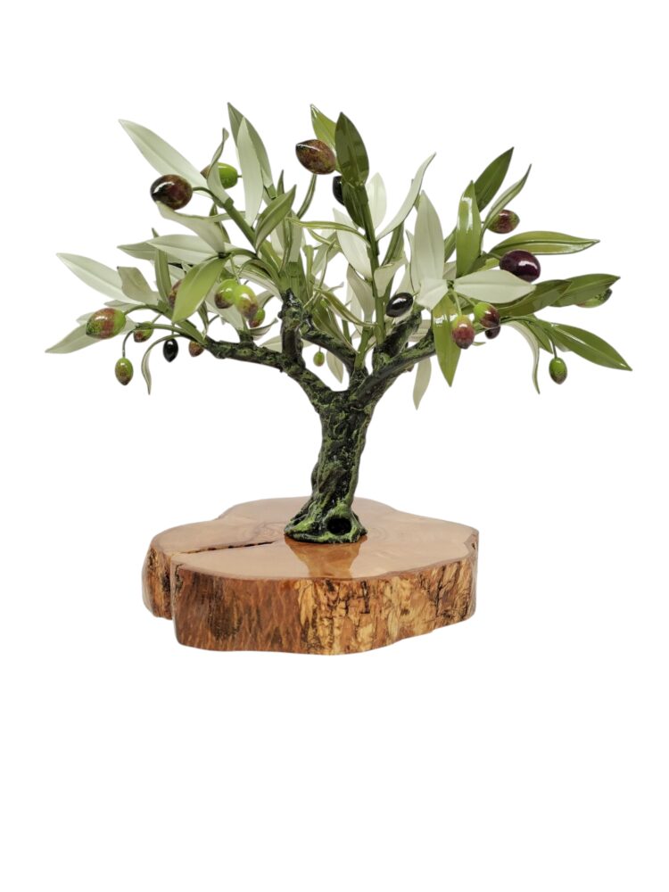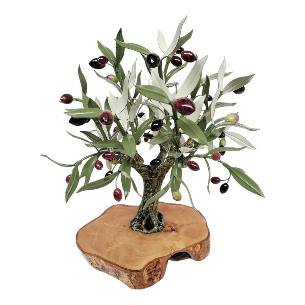 Es una artesanía hecha a mano cuidando todos sus detalles en las ramas, hojas y aceitunas.