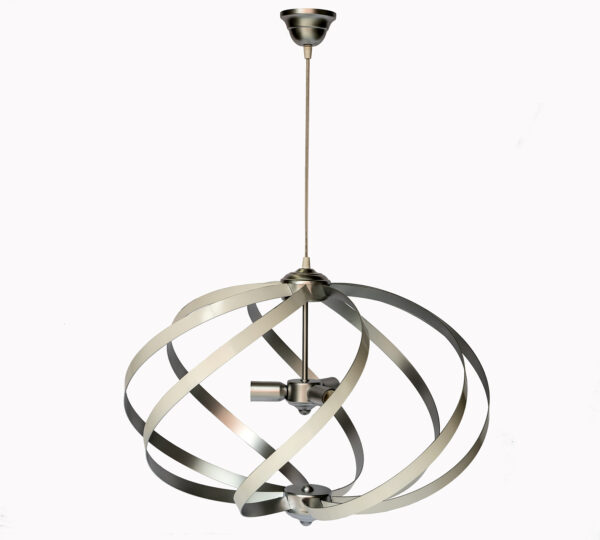 Colgante Espiral de tres luces, decorado en Blanco Plata.